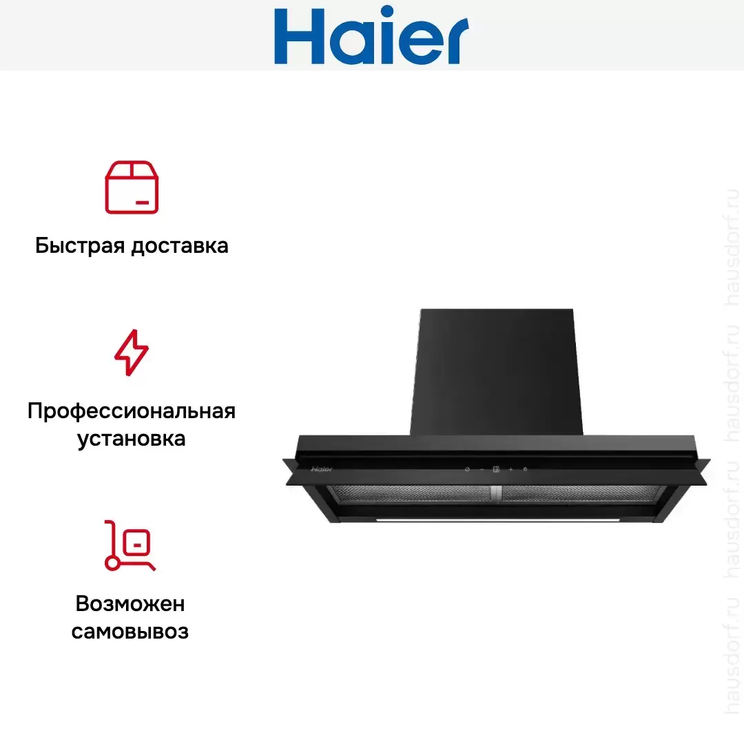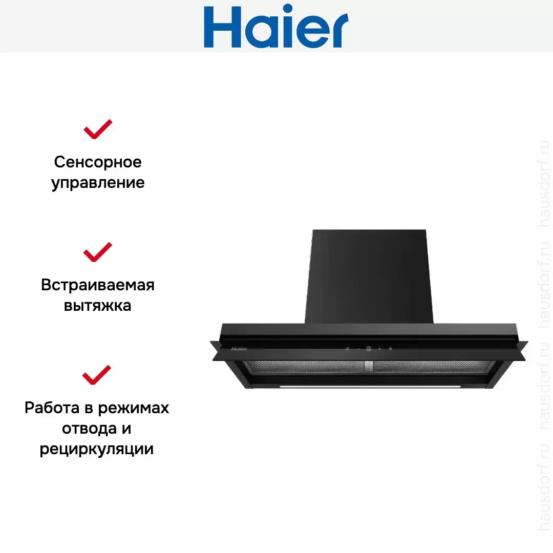 Встраиваемая вытяжка — выбор тех, кто хочет максимально задекорировать технику, или владельцев маленькой кухни. Тип встраивания: в шкаф. Обратите внимание на цветовые сочетания модели Haier HVX-W875TGB, чтобы органично вписать ее в свою квартиру. Оттенок корпуса: черный. Благодаря лампочкам, которые расположены на нем, можно освещать плиту и столешницу рядом, чтобы готовить было еще проще и приятнее.