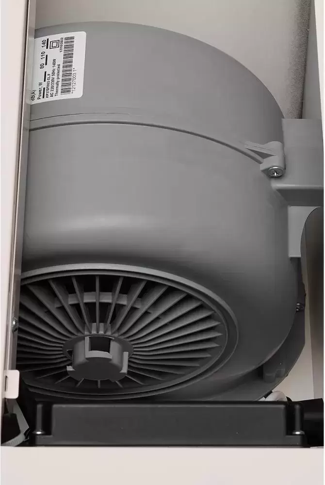Вытяжка работает в режимах отвода и циркуляции, поэтому загрязнения удаляются из комнаты и перенаправляются в воздуховод, при этом можно очистить воздух и использовать повторно за счет возвращения его в помещение. Количество скоростей в этой модели: 3 шт. При этом максимальная производительность составляет 850 куб.м./ч. Уровень шума при полной загруженности — 42 дБ.