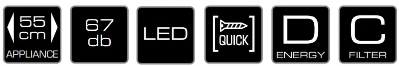 Вытяжка работает в режимах отвода и циркуляции, поэтому загрязнения удаляются из комнаты и перенаправляются в воздуховод, при этом можно очистить воздух и использовать повторно за счет возвращения его в помещение. Количество скоростей в этой модели: 3 шт. При этом максимальная производительность составляет 303 куб.м./ч. Уровень шума при полной загруженности — 67 дБ.