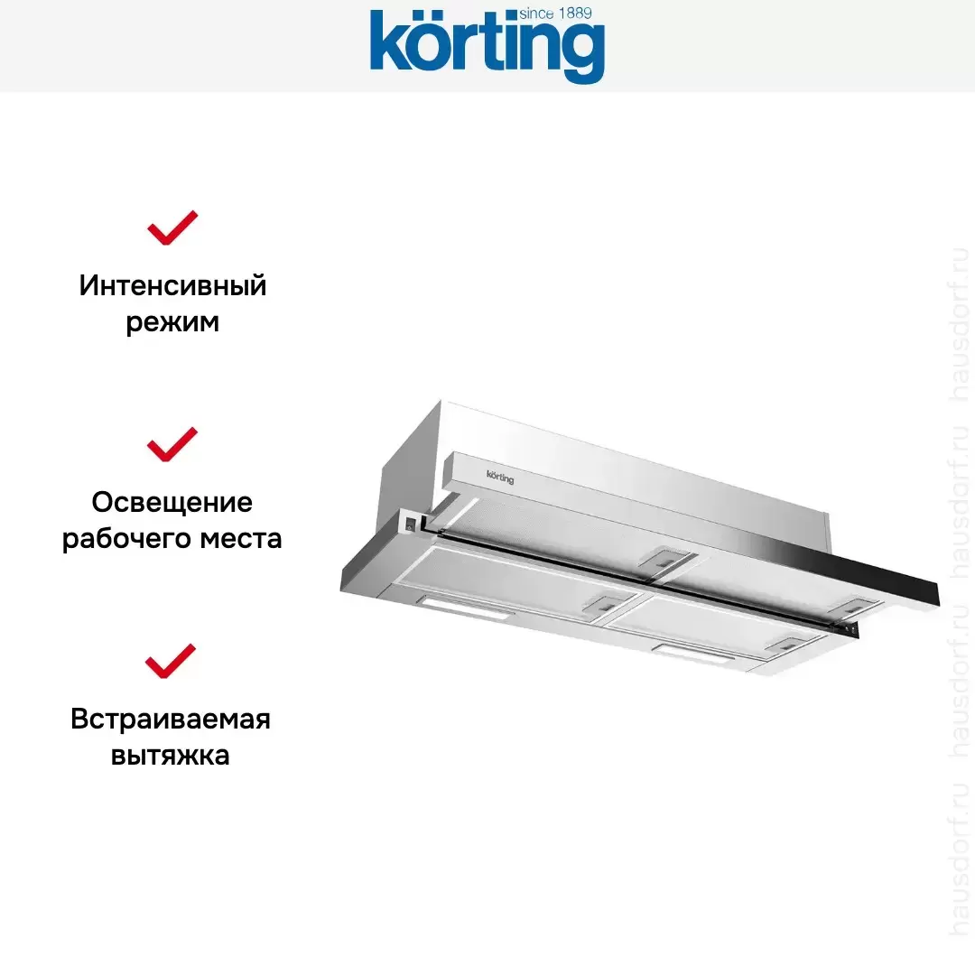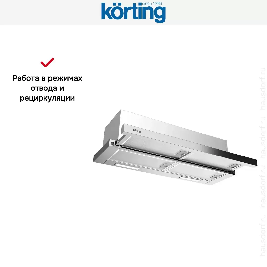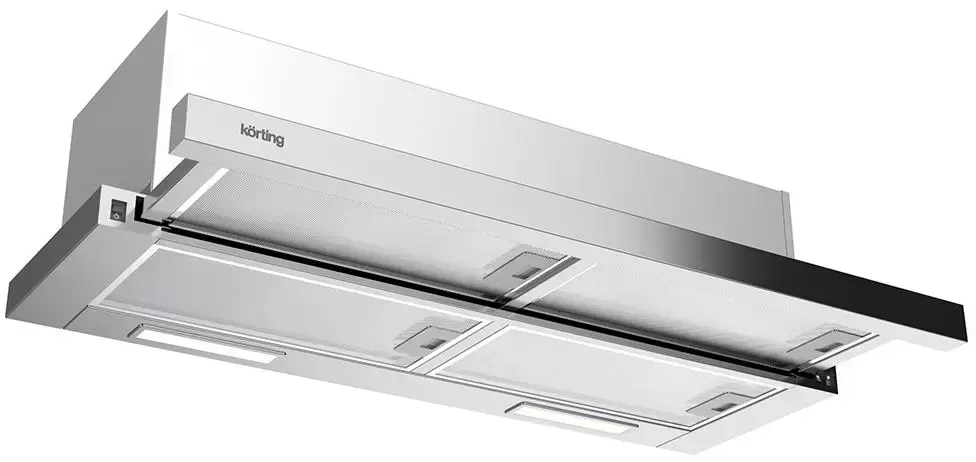 Вытяжка Кортинг KHP 9815 X интегрируется в навесной шкаф, поэтому подойдут в любые интерьерные решения. За счет выдвижной панели увеличивается площадь для забора воздуха. Благодаря своему размеру — ширина 90 сантиметров — подойдет для установки над варочными панелями и плитами на 5 конфорок. Для удобного обслуживания жироулавливающие фильтры разделены на 4 пластины. Они легко снимаются для мытья. Сетка не деформируется и не провисает. Она необходима для того, чтобы задерживать крупные частички из воздушных потоков, тем самым защищая внутренние детали от скопления загрязнений.