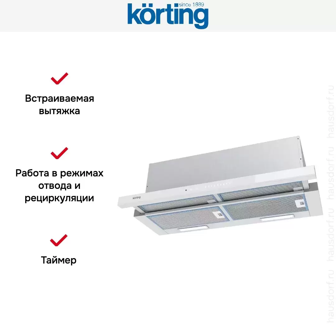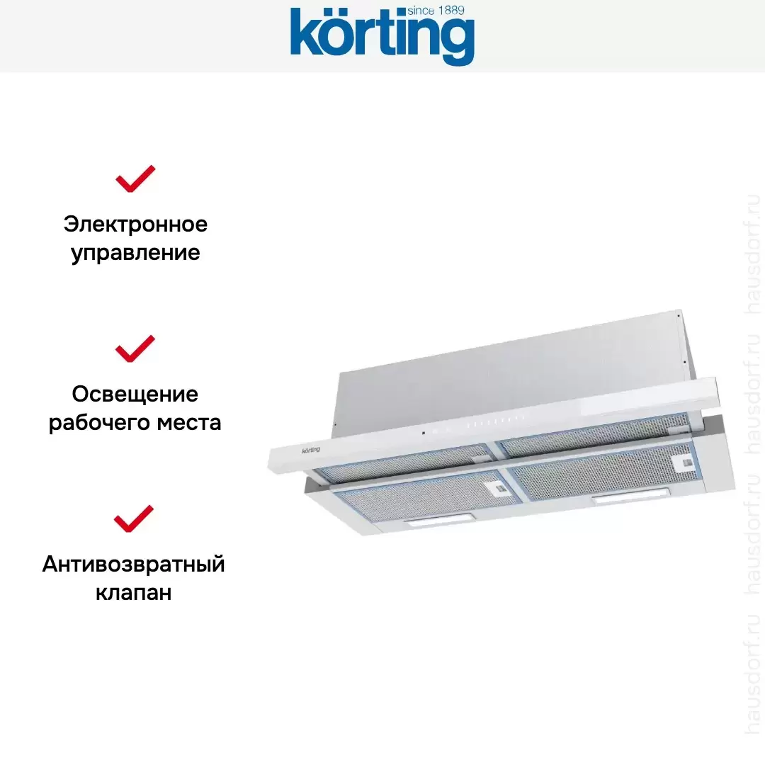Встраиваемая вытяжка — выбор тех, кто хочет максимально задекорировать технику, или владельцев маленькой кухни. Тип встраивания: в шкаф. Обратите внимание на цветовые сочетания модели Korting KHP 9975 GW, чтобы органично вписать ее в свою квартиру. Оттенок корпуса: белый. Благодаря лампочкам, которые расположены на нем, можно освещать плиту и столешницу рядом, чтобы готовить было еще проще и приятнее.