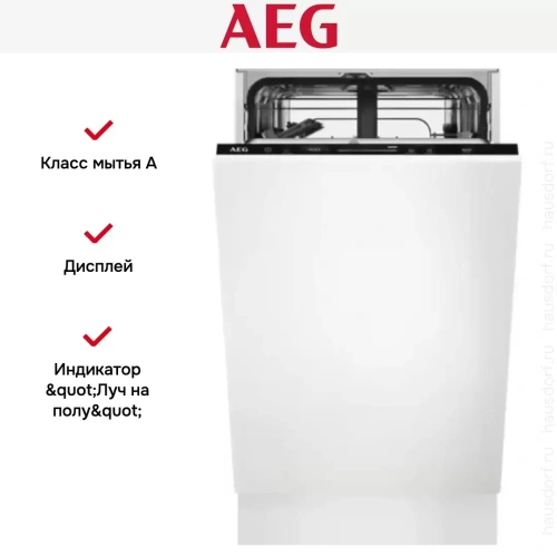 Встраиваемая модель АЕГ отлично впишется в любой интерьер, главное — правильно выбрать место, чтобы подвести коммуникации. Устанавливается в нишу целиком, полностью закрывается декоративной панелью. Обратите внимание: в комплекте не идет фасад, его необходимо установить самостоятельно. Имеет уменьшенную ширину — благодаря этому поместится даже на очень маленькой кухне. В камеру можно загрузить ограниченное число комплектов: 9 шт. Комплектом считается набор посуды на одного человека, который нужен для полноценного приема пищи: глубокая и плоская тарелки, тарелка для салата, блюдце под чашку, сама чашка, ложка и вилка.