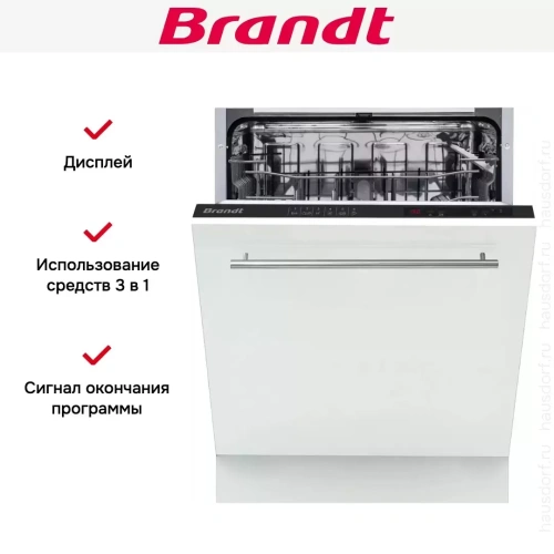 Посудомоечная машина Brandt BDFI37EB — полностью встраиваемая модель от известного производителя техники. Устройство интегрируется в нишу, а на переднюю стенку навешивается фасад кухонного гарнитура, поэтому изделие подойдет для установки в любое стилистическое решение: от классики и ретро до современного минимализма. Для качественной работы и комфортного обслуживания предусмотрена индикация, которая оповещает пользователя о том, что необходимо пополнить резервуары с солью и ополаскивателем. Внутри — две вместительные корзины и отдельный переносной бокс для столовых прибором. Для того, чтобы легко разместить крупногабаритную посуду или предметы нестандартной формы в посудомоечной машине Брандт BDFI37EB предусмотрена регулировка по высоте верхней корзины. Тихая работа — еще одно достоинство изделия.