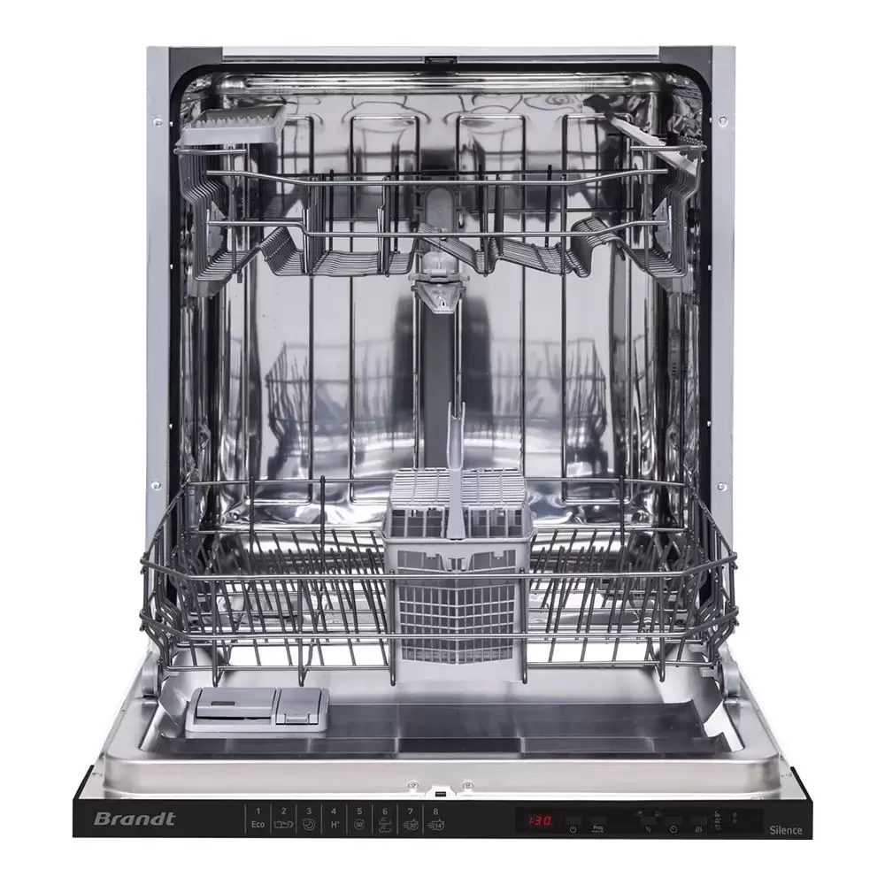 Посудомоечная машина Brandt BDFI44DQB представлена в традиционном размере — шириной 60 сантиметров. Такие габариты считаются оптимальными, так как позволяют с дополнительным комфортом расположить объемные предметы, а также посуду нестандартных форм. Модель располагает двумя вместительными корзинами с разнообразными держателями, а также переносным боксом для столовых приборов. Камеры выполнена из качественной нержавеющей стали, которая устойчиво к образованию коррозий. Изделие содержит разнообразные режимы, поэтому можно подобрать идеальный вариант для любой задачи — от легкого споласкивания до интенсивного мытья пригоревшего противня. Среди преимуществ посудомоечной машины Брандт BDFI44DQB — режим половинной загрузки, который помогает экономить время и электроэнергию при мытье небольшого количества предметов.