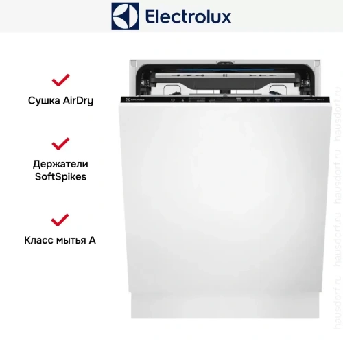 Встраиваемая модель Электролюкс отлично впишется в любой интерьер, главное — правильно выбрать место, чтобы подвести коммуникации. Устанавливается в нишу целиком, полностью закрывается декоративной панелью. Обратите внимание: в комплекте не идет фасад, его необходимо установить самостоятельно. Имеет стандартные размеры, поэтому может не поместиться на очень маленькой кухне. В камеру можно загрузить ограниченное число комплектов: 14 шт. Комплектом считается набор посуды на одного человека, который нужен для полноценного приема пищи: глубокая и плоская тарелки, тарелка для салата, блюдце под чашку, сама чашка, ложка и вилка.
