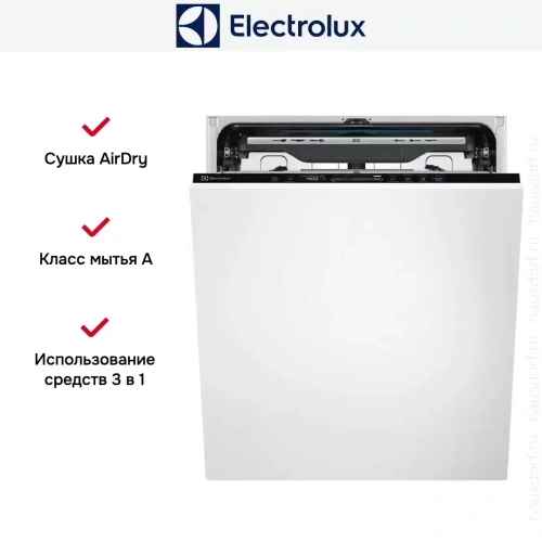 Встраиваемая модель Электролюкс отлично впишется в любой интерьер, главное — правильно выбрать место, чтобы подвести коммуникации. Устанавливается в нишу целиком, полностью закрывается декоративной панелью. Обратите внимание: в комплекте не идет фасад, его необходимо установить самостоятельно. Имеет стандартные размеры, поэтому может не поместиться на очень маленькой кухне. В камеру можно загрузить ограниченное число комплектов: 15 шт. Комплектом считается набор посуды на одного человека, который нужен для полноценного приема пищи: глубокая и плоская тарелки, тарелка для салата, блюдце под чашку, сама чашка, ложка и вилка.