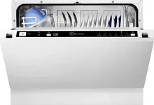 Встраиваемая модель Электролюкс отлично впишется в любой интерьер, главное — правильно выбрать место, чтобы подвести коммуникации. Устанавливается в нишу целиком, полностью закрывается декоративной панелью. Обратите внимание: в комплекте не идет фасад, его необходимо установить самостоятельно. Имеет стандартные размеры, поэтому может не поместиться на очень маленькой кухне. В камеру можно загрузить ограниченное число комплектов: 14 шт. Комплектом считается набор посуды на одного человека, который нужен для полноценного приема пищи: глубокая и плоская тарелки, тарелка для салата, блюдце под чашку, сама чашка, ложка и вилка.