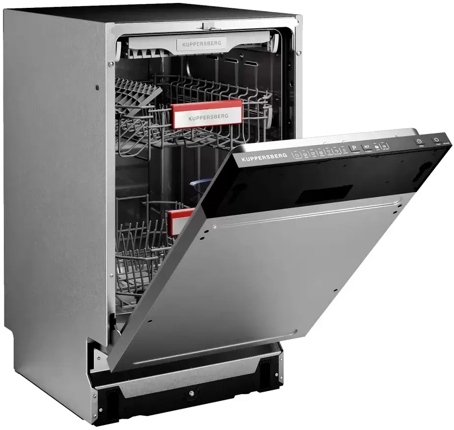 Встраиваемая модель Куперсберг отлично впишется в любой интерьер, главное — правильно выбрать место, чтобы подвести коммуникации. Устанавливается в нишу целиком, полностью закрывается декоративной панелью. Обратите внимание: в комплекте не идет фасад, его необходимо установить самостоятельно. Имеет уменьшенную ширину — благодаря этому поместится даже на очень маленькой кухне. В камеру можно загрузить ограниченное число комплектов: 11 шт. Комплектом считается набор посуды на одного человека, который нужен для полноценного приема пищи: глубокая и плоская тарелки, тарелка для салата, блюдце под чашку, сама чашка, ложка и вилка.