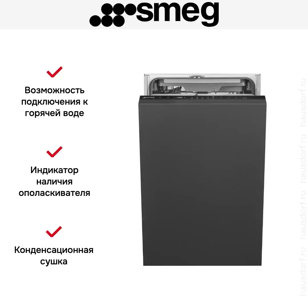 Посудомоечная машина Smeg ST4533IN предназначена для полного встраивания в мебельную нишу. Данная модель станет надёжным помощником на вашей кухни на долгие годы. Восемь стандартных программ отмоют любой вид посуды и степень загрязненности. Отсрочка старта доступна до 24 часов, к вашему приходу цикл мойки будет закончен.