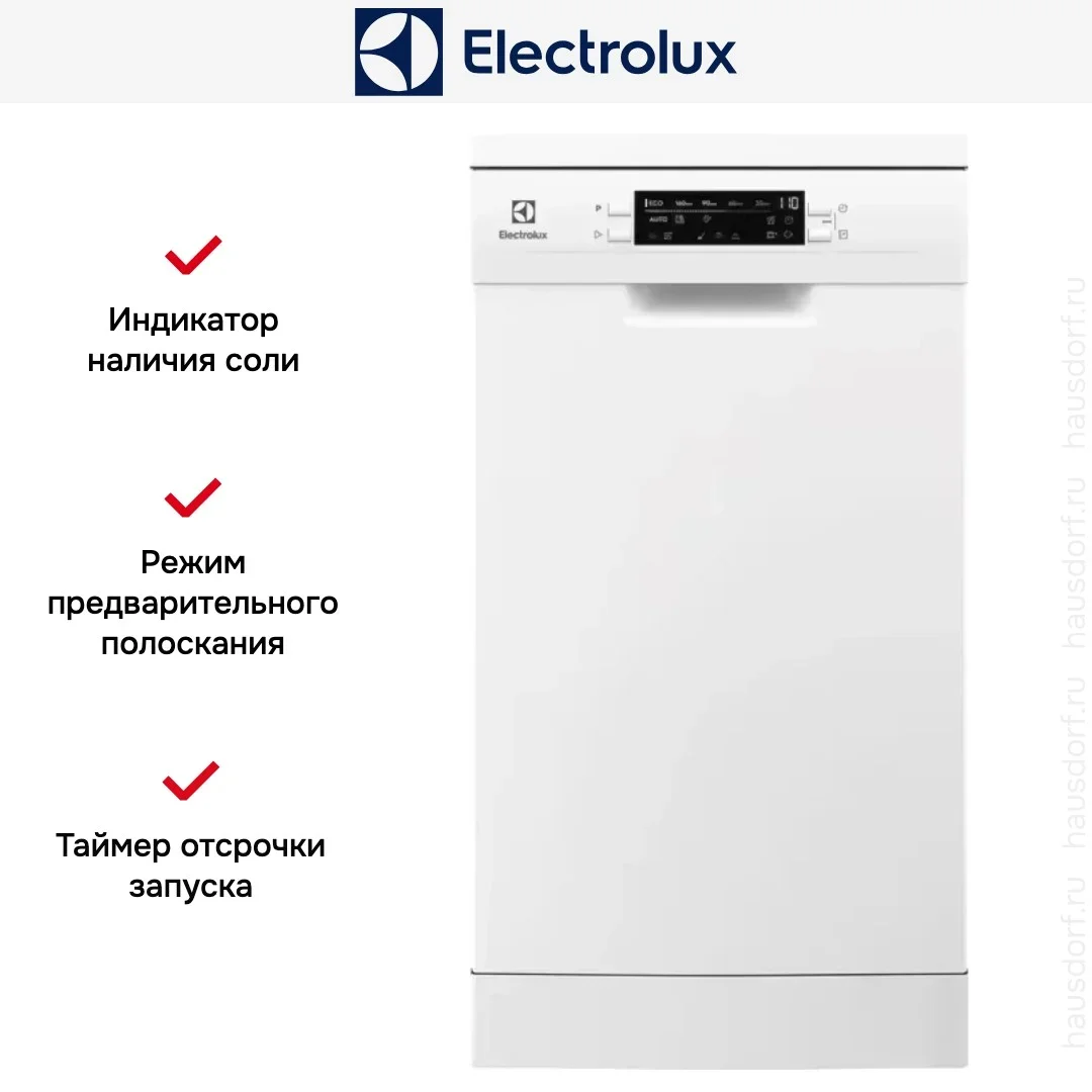 Посудомоечная машина Electrolux ESA42110SW — компактное и продуманное решение для небольшой кухни, которое сочетает в себе аккуратный дизайн и эффективную функциональность. Корпус и панель управления выполнены в белом цвете, что делает прибор универсальным в сочетании с любой бытовой техникой и мебелью. Открытая панель с цифровым дисплеем обеспечивает понятный и быстрый доступ ко всем настройкам. Гладкие линии и минималистичный внешний вид придают изделию современный облик, при этом габариты 84,8×44,6×61 см экономят место и подходят для узких ниш.