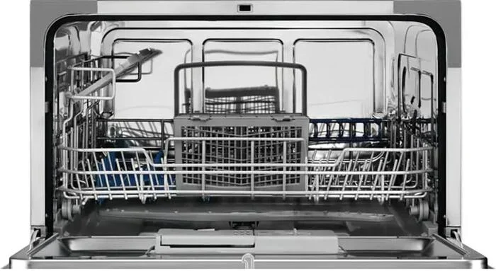 Посудомоечная машина Electrolux ESF2400OW — это компактное и практичное решение для небольших кухонь, студий или дач, где важны экономия пространства и высокая эффективность. Благодаря отдельностоящему исполнению и уменьшенной высоте всего 43,8 см при стандартной ширине 55 см и глубине 50 см, модель легко размещается даже в ограниченном пространстве, не требуя встраивания. Несмотря на компактные габариты, техника предлагает полный функционал, необходимый для качественной мойки посуды.