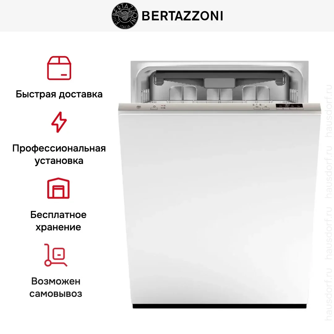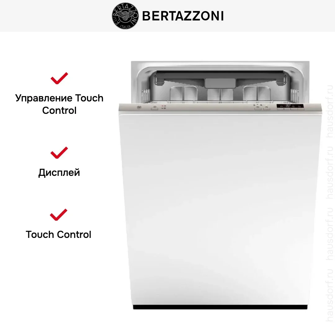 Посудомоечная машина Bertazzoni полностью встраивается в нишу кухонного гарнитура — она уже подготовлена к навеске мебельного фасада, остается только закрепить его. Обратите внимание: декоративные панели не входят в комплект. При проектировании кухни важно соблюдать требования производителя, указанные в инструкции: вес мебельного фасада не должен превышать допустимый, чтобы не деформировать технику.