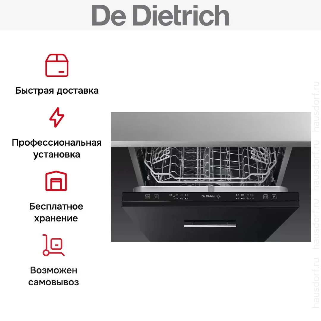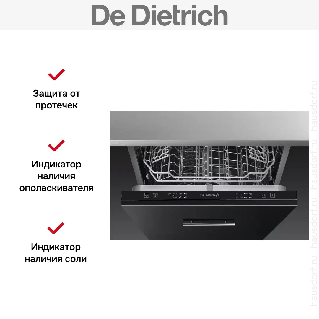 Встраиваемая посудомоечная машина De Dietrich KDLV326J2 создаёт аккуратный и сдержанный акцент в кухне, полностью пряча фронт под ваш фасад. Панель управления в черном цвете расположена за закрытой дверцей, что сохраняет единый стиль интерьера и защищает элементы от случайного нажатия. Корпус и габариты рассчитаны на стандартную нишу 82×60×58 см, что облегчает монтаж в большинстве модульных кухонь. Компактная глубина 55 см позволяет экономить пространство при сохранении полноценной вместимости.