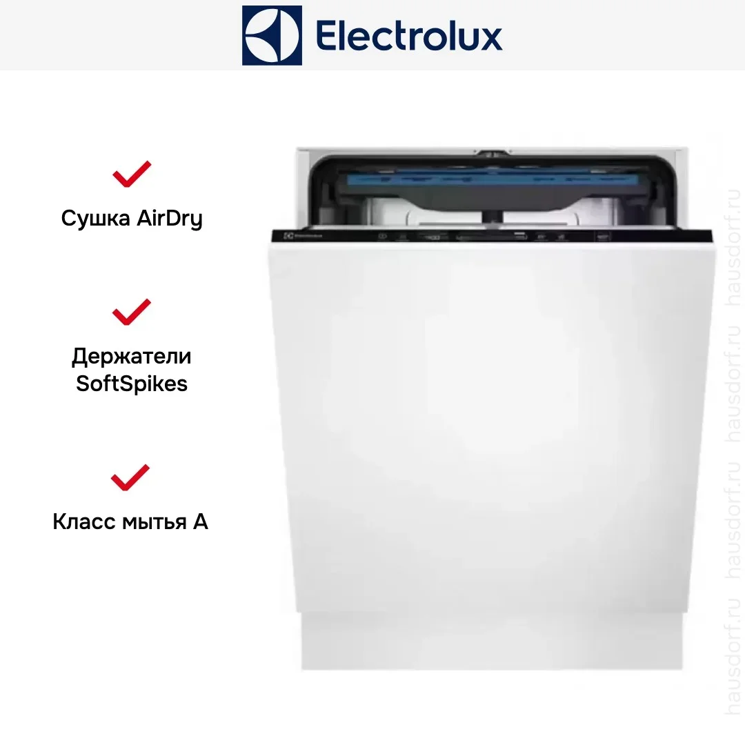 Встраиваемая модель Электролюкс отлично впишется в любой интерьер, главное — правильно выбрать место, чтобы подвести коммуникации. Устанавливается в нишу целиком, полностью закрывается декоративной панелью. Обратите внимание: в комплекте не идет фасад, его необходимо установить самостоятельно. Имеет стандартные размеры, поэтому может не поместиться на очень маленькой кухне. В камеру можно загрузить ограниченное число комплектов: 14 шт. Комплектом считается набор посуды на одного человека, который нужен для полноценного приема пищи: глубокая и плоская тарелки, тарелка для салата, блюдце под чашку, сама чашка, ложка и вилка.