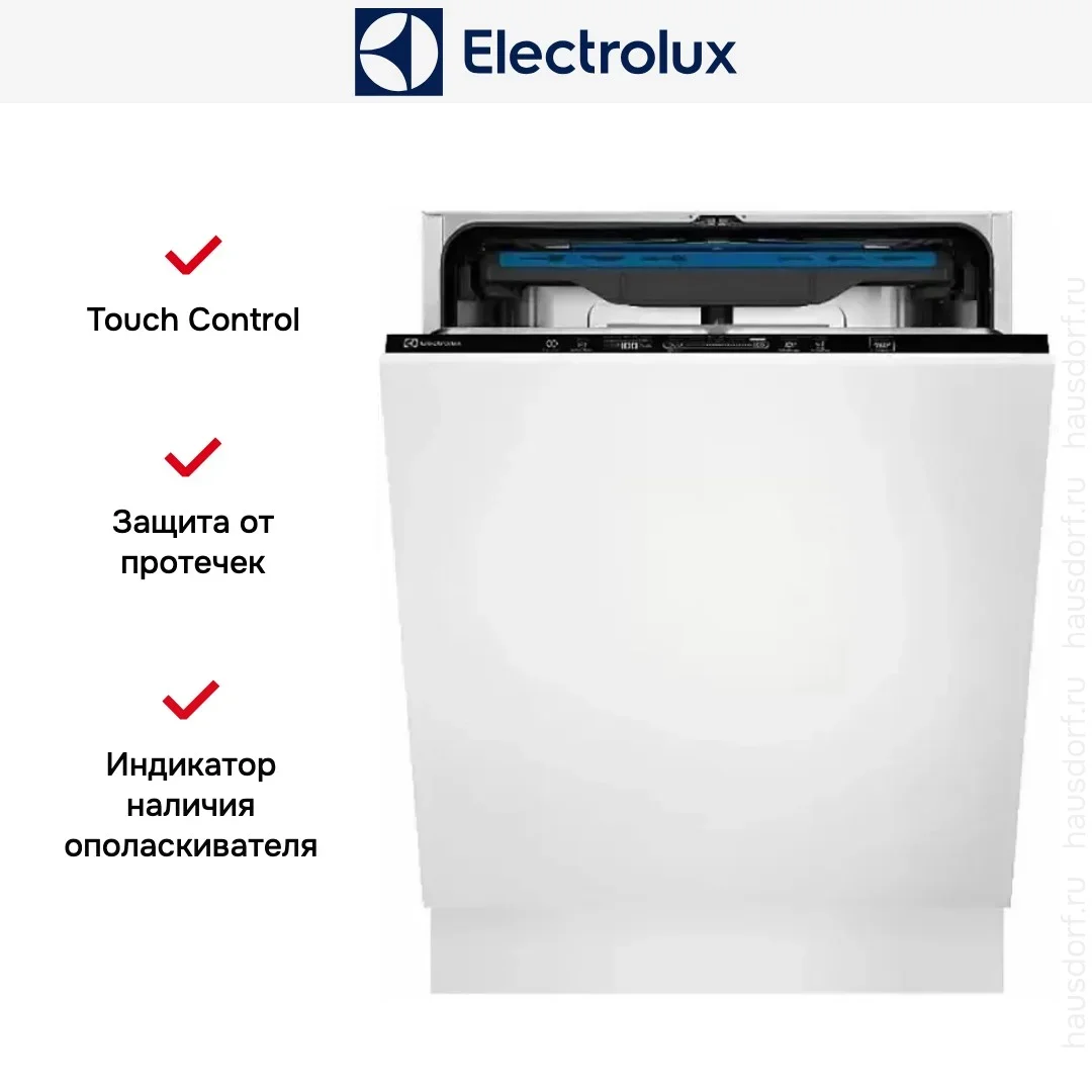 Встраиваемая модель Электролюкс отлично впишется в любой интерьер, главное — правильно выбрать место, чтобы подвести коммуникации. Устанавливается в нишу целиком, полностью закрывается декоративной панелью. Обратите внимание: в комплекте не идет фасад, его необходимо установить самостоятельно. Имеет стандартные размеры, поэтому может не поместиться на очень маленькой кухне. В камеру можно загрузить ограниченное число комплектов: 14 шт. Комплектом считается набор посуды на одного человека, который нужен для полноценного приема пищи: глубокая и плоская тарелки, тарелка для салата, блюдце под чашку, сама чашка, ложка и вилка.