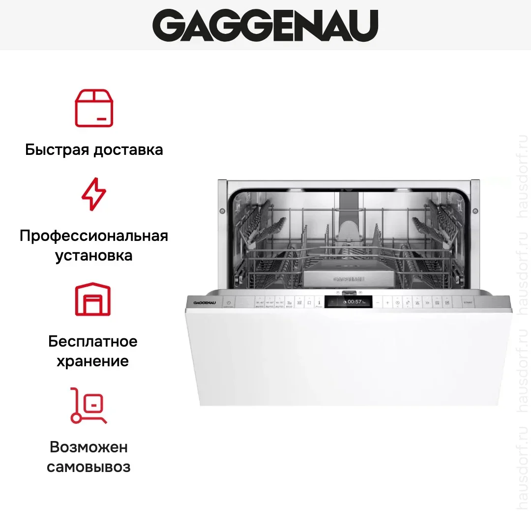 Встраиваемая модель Гаггенау отлично впишется в любой интерьер, главное — правильно выбрать место, чтобы подвести коммуникации. Устанавливается в нишу целиком, полностью закрывается декоративной панелью. Обратите внимание: в комплекте не идет фасад, его необходимо установить самостоятельно. Имеет стандартные размеры, поэтому может не поместиться на очень маленькой кухне. В камеру можно загрузить ограниченное число комплектов: 12 шт. Комплектом считается набор посуды на одного человека, который нужен для полноценного приема пищи: глубокая и плоская тарелки, тарелка для салата, блюдце под чашку, сама чашка, ложка и вилка.