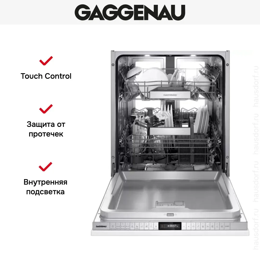 Встраиваемая модель Гаггенау отлично впишется в любой интерьер, главное — правильно выбрать место, чтобы подвести коммуникации. Устанавливается в нишу целиком, полностью закрывается декоративной панелью. Обратите внимание: в комплекте не идет фасад, его необходимо установить самостоятельно. Имеет стандартные размеры, поэтому может не поместиться на очень маленькой кухне. В камеру можно загрузить ограниченное число комплектов: 12 шт. Комплектом считается набор посуды на одного человека, который нужен для полноценного приема пищи: глубокая и плоская тарелки, тарелка для салата, блюдце под чашку, сама чашка, ложка и вилка.
