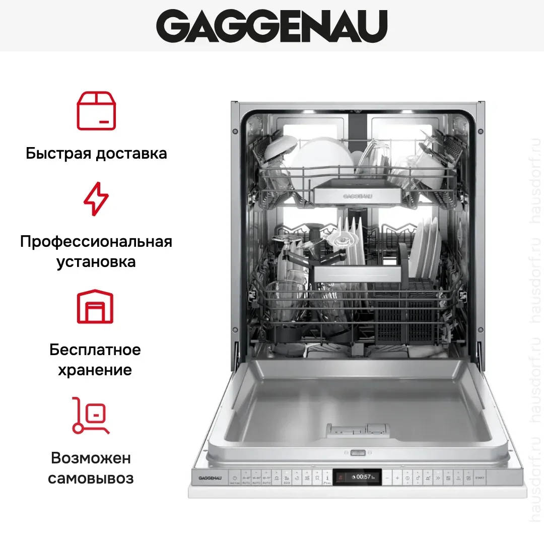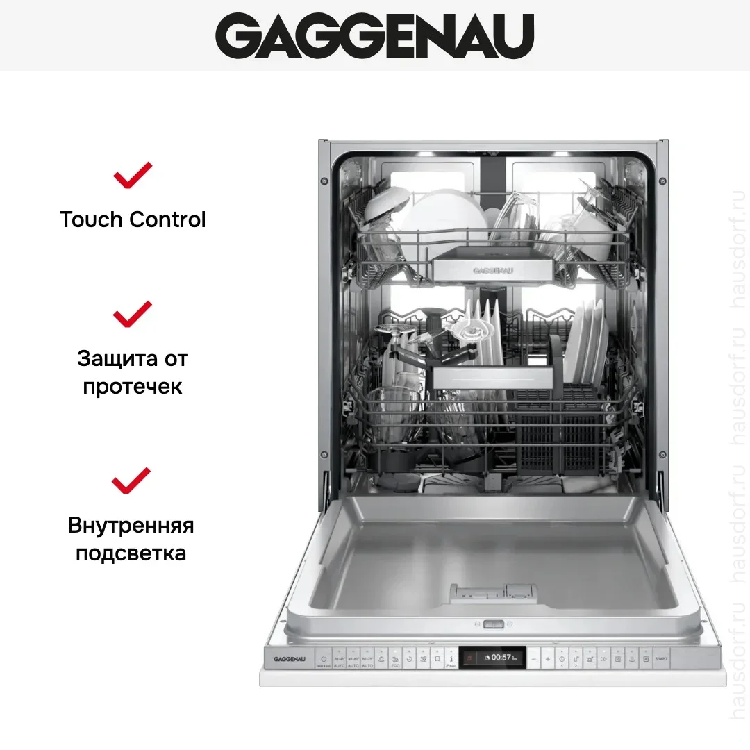 Встраиваемая посудомоечная машина Gaggenau DF480101F представляет собой полностью интегрируемую модель, которая аккуратно исчезает за фасадом кухонного гарнитура и сохраняет единый интерьер. Ее утонченная лицевая панель из нержавеющей стали сочетается с любым стилем, а возможность установки под собственный фасад позволяет сохранить дизайнерскую целостность. Механизм Push-to-Open и опция Knock-to-Open дают бесшумный доступ к камере без видимых ручек, а автоматическое приоткрытие дверцы по завершении цикла улучшает сушку и уменьшает запахи внутри.