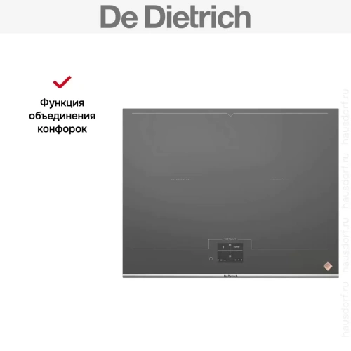 Модель Де Дитрих DPI7698G входит в дизайн-линейку: horiZone Chef Tactilium. Цвет — серый. Материал самой поверхности: стеклокерамика. Управление этой моделью электронное. Для переключения уровней нагрева, выбора функций используются следующие переключатели: сенсорные/TouchControl, сенсорный слайдер/TouchSlider. Продвинутая система контроля за прибором делают его современным и отвечающим на главные запросы покупателя.
