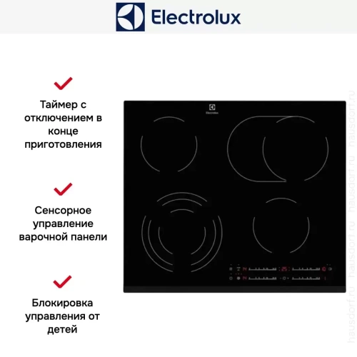 Зоны нагрева в модели Electrolux стандартные, нет дополнительных особенностей.