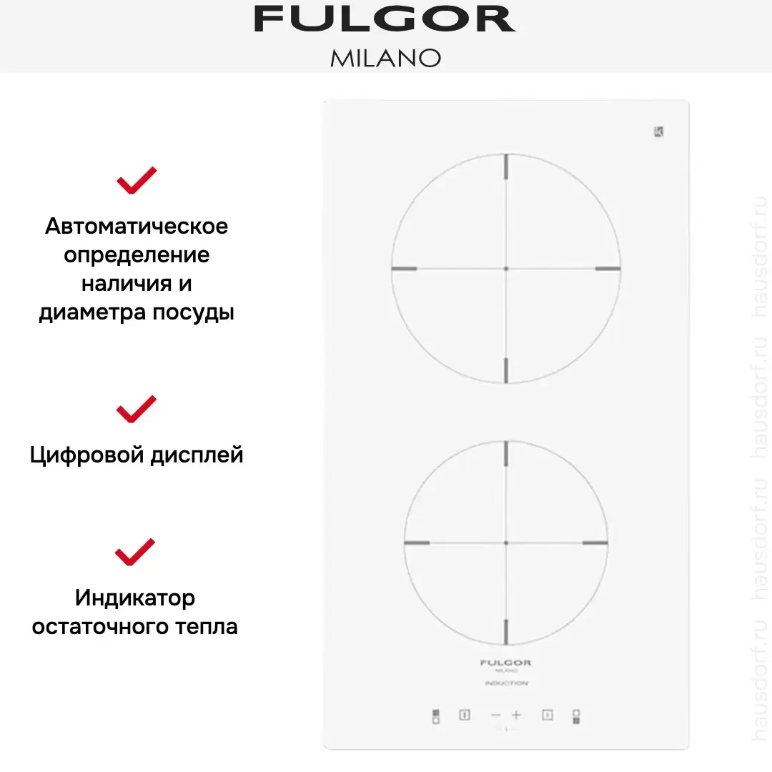 Варочная панель работает на индукционном нагреве — это значит, что повышается температура непосредственно посуды, в которой готовится блюдо. Таким образом промежуточная ступень с предварительным нагревом конфорки пропускается — сокращается время, повышается безопасность. Количество конфорок в этой модели: 2.