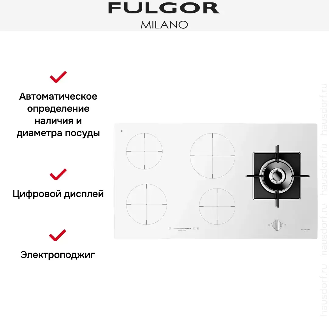 Варочная панель Фулгор Милано FCH 905 ID TS G DWK WH работает с несколькими видами нагрева — благодаря такой комбинации можно экономить энергию, выбирать более подходящие конфорки для тех блюд, которые хочется приготовить сейчас. Количество конфорок в этой модели: 5. Горелки с двойной короной позволяют увеличивать мощность нагрева в зависимости от диаметра посуды.