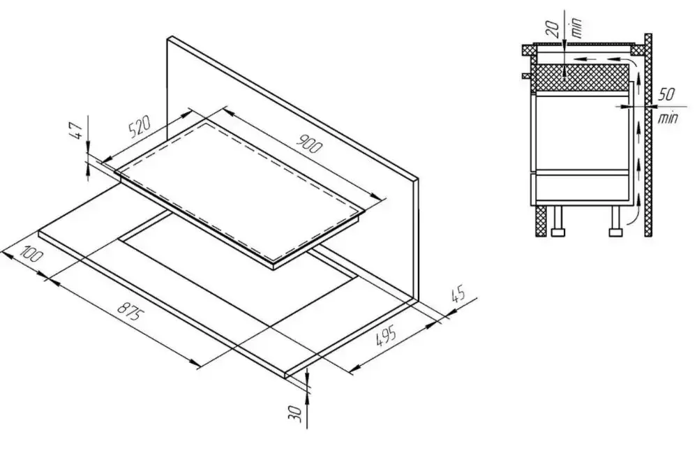 | Размеры ниши для встраивания (Ш х Г), см | 87.5x49.5 | |