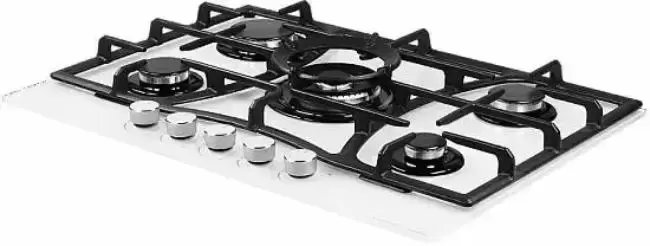 Выбор газовой варочной панели чаще всего обусловлен тем, что в частный дом или квартиру проведен именно газ в качестве обогрева. Работать с этой моделью довольно просто, так как мощность нагрева видна невооруженным взглядом — по силе огня в горелке. Количество конфорок в этой модели: 5.
