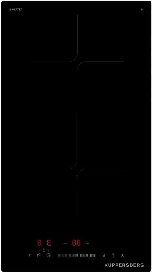 Варочная панель работает на индукционном нагреве — это значит, что повышается температура непосредственно посуды, в которой готовится блюдо. Таким образом промежуточная ступень с предварительным нагревом конфорки пропускается — сокращается время, повышается безопасность. Количество конфорок в этой модели: 2.