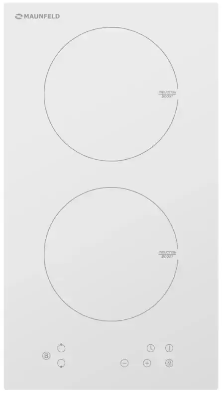 Maunfeld EVI.292-WH — белая варочная панель в дизайне Domino. Ширина 30 см позволит встраивать ее в столешницу с другими панелями для создания рабочей зоны в соответствии с собственными пожеланиями. Нагрев посредством магнитной индукции более выгоден, так как нагревается непосредственно посуда, а не поверхность. Это не только более безопасно, но и экономит время и электроэнергию. Модель оборудована двумя индукционными конфорками с функцией увеличения мощности нагрева Booster.