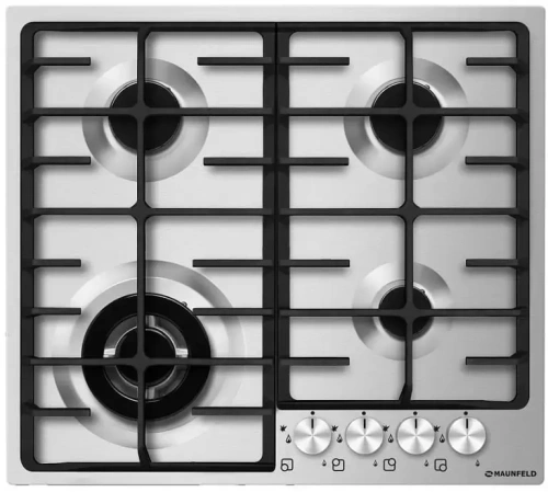 Maunfeld MGHS.64.74S — стальная варочная панель с цельнометаллическими ручками управления. Модель снабжена четырьмя разноразмерными горелками с газ-контролем и электроподжигом. Прочные и простые в уходе решетки из чугуна гарантируют надежное удержание посуды. Преимущество решетки заключается еще и в том, что на ней можно разместить посуду, даже небольшого диаметра, например, турку, так как область над горелкой закрытая и исключается риск заваливания на бок. Большая конфорка с двойным рядом пламени сокращает время приготовления. Кроме этого, можно отметить тихую подачу газа и комфортное регулирование мощности пламени.