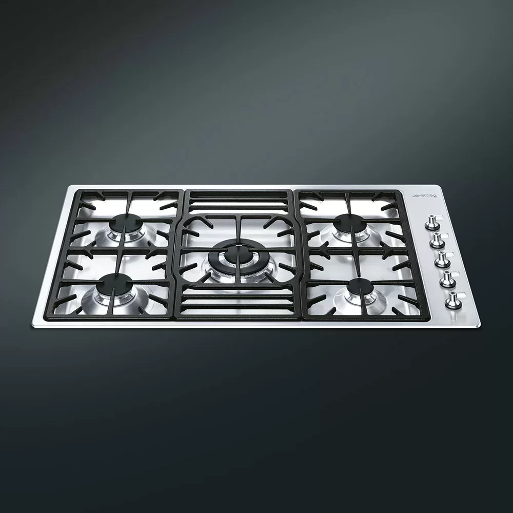 Варочная поверхость Smeg PGF95-4, выполненная из нержавеющей стали, органично дополнит современный кухонный интерьер в стиле Hi-Tech. Розжиг горелок осуществляется с помощью поворотных регуляторов, расположенных на правой стороне панели. Система защиты от утечек автоматически прекращает подачу пламени в случае внезапного затухания пламени конфорки. Система срабатывает через несколько секунд после обнаружения отсутствия огня.