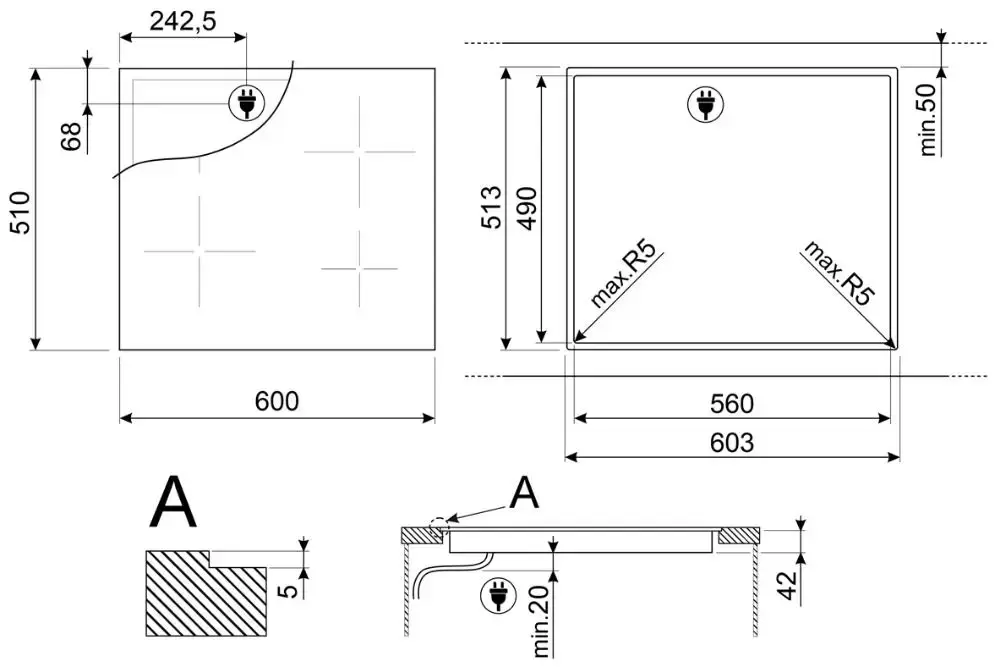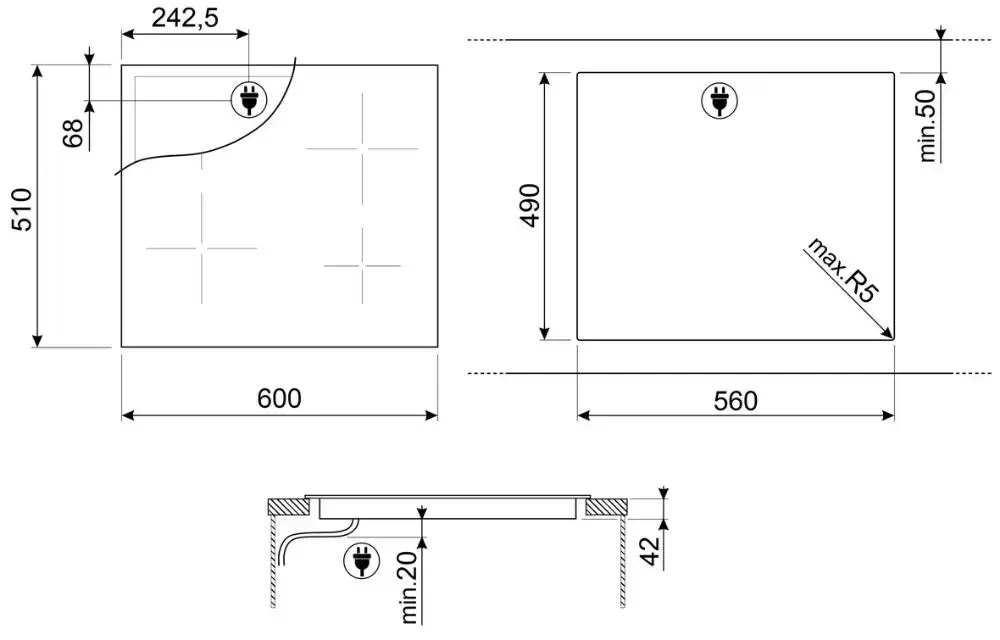 | Размеры ниши для встраивания (Ш х Г), см | 56х49 | |
