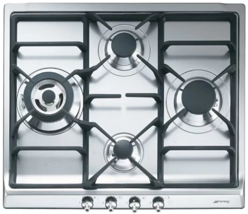 Smeg SER60SGH3 — варочная поверхность из серии Classica с четырьмя газовыми конфорками различной мощности. Модель оборудована чугунной решеткой с шероховатой поверхностью, прочной и простой в уходе. Система автоматического электроподжига гарантирует максимальный комфорт при повседневной эксплуатации устройства. Она встроена в каждую ручку — искра срабатывает при повороте регулятора.