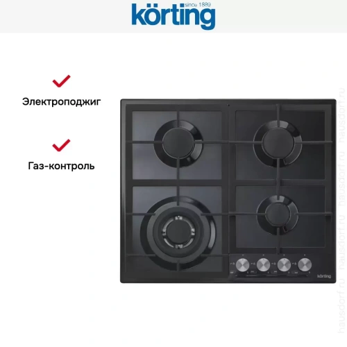 Korting HG 665 CTN — независимая варочная поверхность с эмалированной панелью конфорок. Поверхность универсального черного цвета из коллекции Crystal украсит кухню любого стиля — классического, современного, деревенского. Четыре горелки разной мощности позволяют готовить разнообразно и вкусно. В первом ряду справа расположена сверхмощная WOK-конфорка с тремя рядами пламени. Такая конструкция обеспечивает более интенсивный нагрев дна посуды и позволяет быстрее кипятить воду, а также использовать посуду округлой формы. Эта конфорка размещена так, чтобы можно было удобно ставить большие казаны или сковороды WOK, при этом снизить риск ожога и минимизировать ущерб для кухонной мебели и стен. В сторону от мощной конфорки вынесена и панель управления. Бесступенчатая регулировка мощности выполняется при помощи четырех поворотных регуляторов: их дизайн подчеркивает общий стиль, а металлические ручки не нагреваются, даже когда газ включен. Варочную панель можно подключать к баллонному газу при помощи системы форсунок, которые входят в комплект — это особенно удобно при установке на даче. Модель оборудована высокопрочными чугунными решетками, обеспечивающими надежное удержание посуды. Для удобства при активации горелок предусмотрена система автоматического электроподжига. Защита от утечек гарантируется наличием технологии газового контроля.