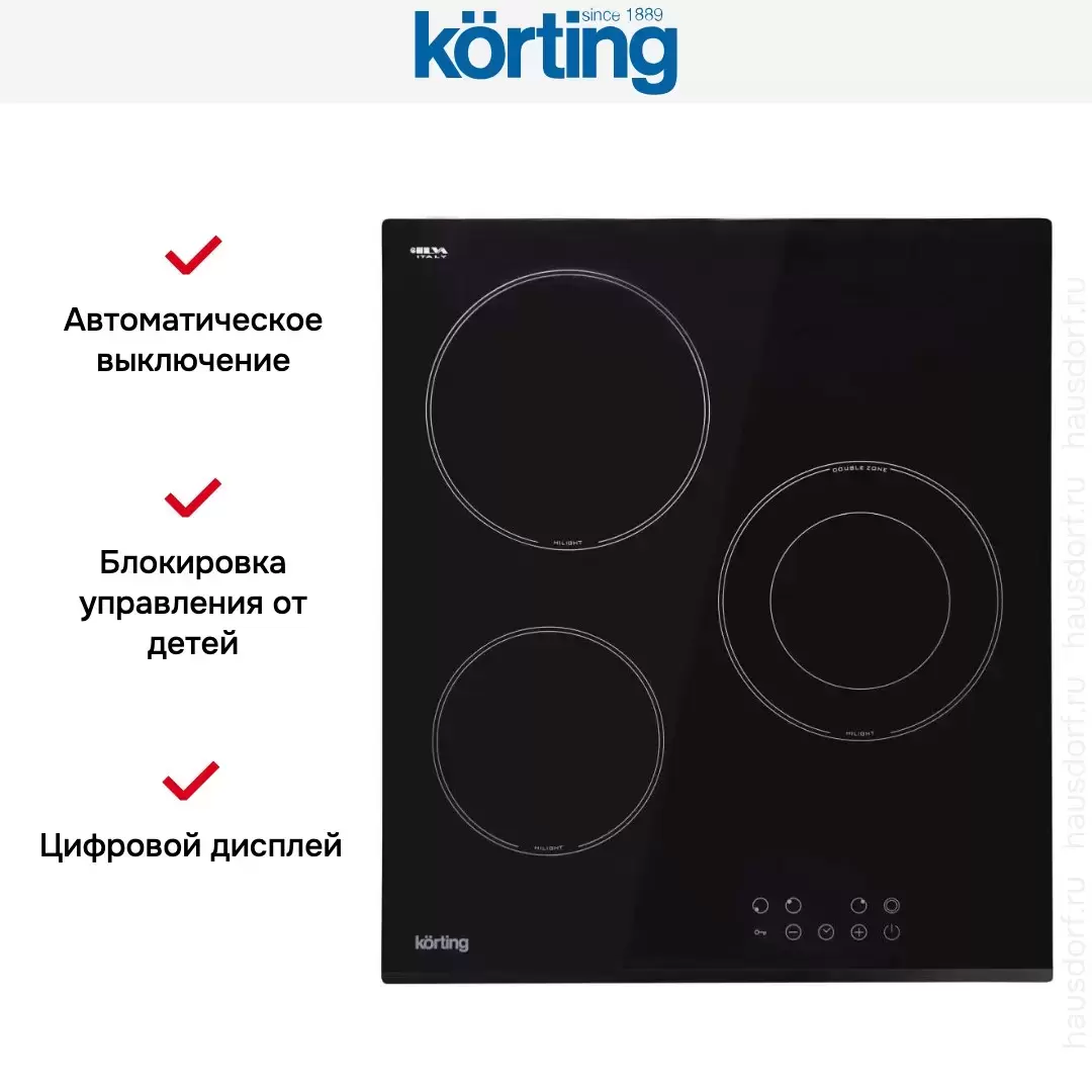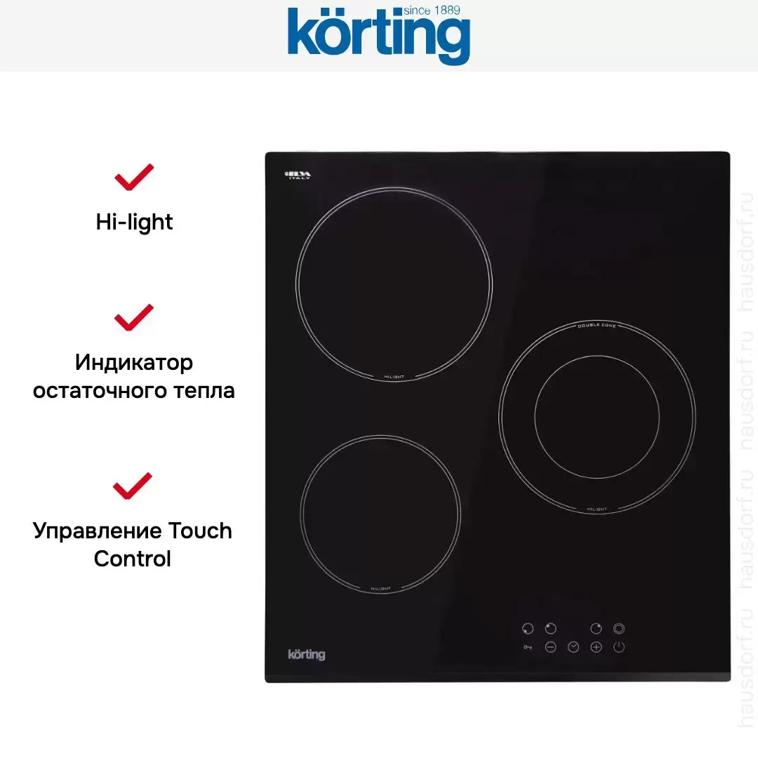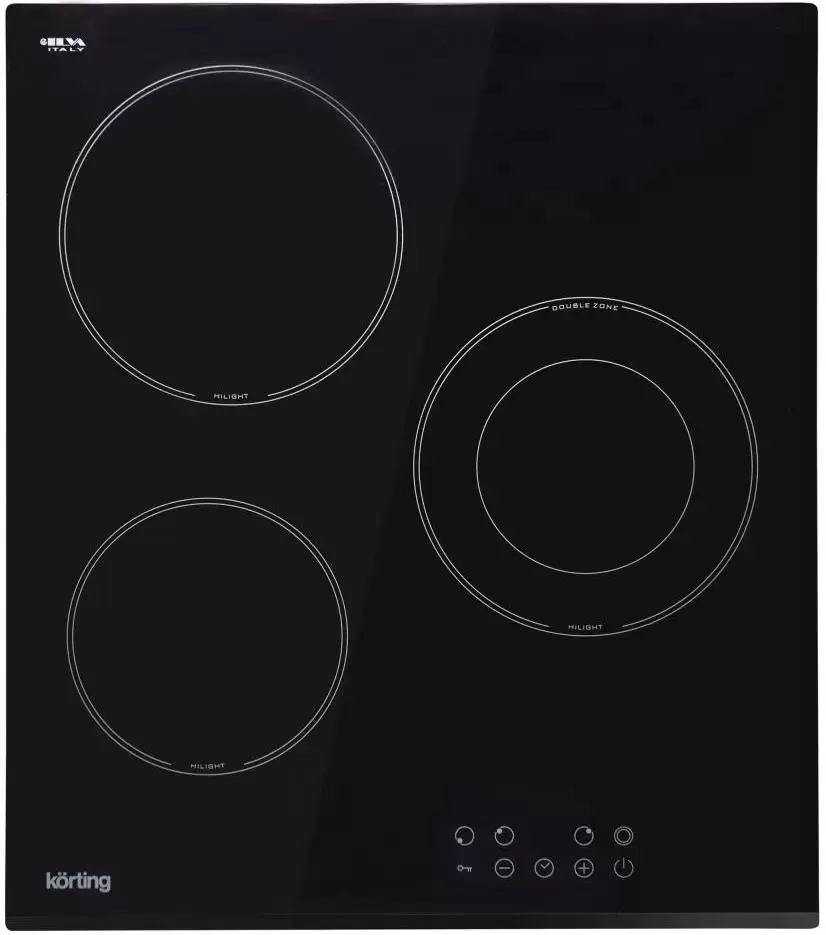 Данная варочная панель имеет классический электрический нагрев, при котором сначала раскаляются конфорки (точнее элементы, скрытые под поверхностью), а затем передают это тепло посуде. Разобраться, как с ней работать, просто даже пожилым людям, привыкшим к плитам. Количество конфорок в этой модели: 3.