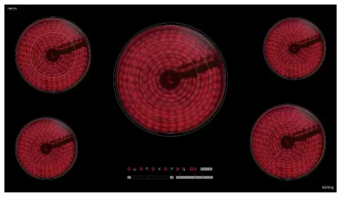 Данная варочная панель имеет классический электрический нагрев, при котором сначала раскаляются конфорки (точнее элементы, скрытые под поверхностью), а затем передают это тепло посуде. Разобраться, как с ней работать, просто даже пожилым людям, привыкшим к плитам. Количество конфорок в этой модели: 5.