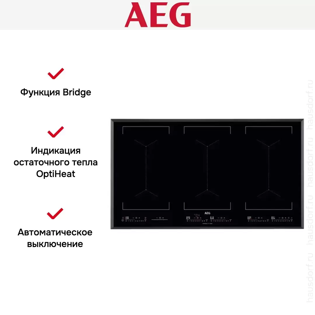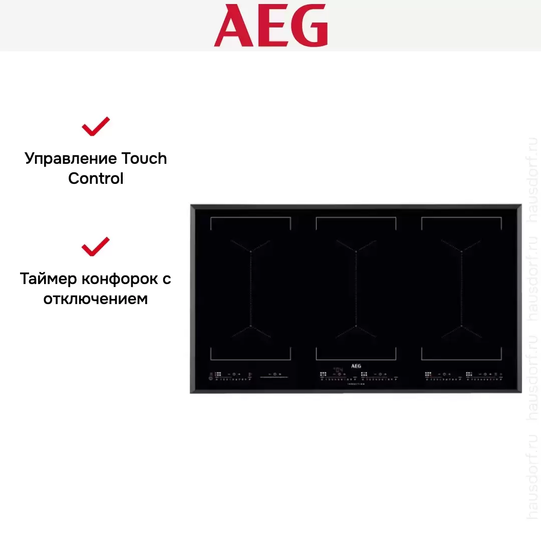Варочная панель AEG IKE96654FB — это индукционное устройство премиум-класса, сочетающее в себе передовые технологии, эргономичный дизайн и высокую производительность для современной кухни. Модель выполнена в глубоком чёрном цвете со скошенными краями, что придаёт поверхности изысканность, визуальную лёгкость и устойчивость к загрязнениям. Она гармонично вписывается как в минималистичные, так и в роскошные интерьеры. Благодаря независимой установке и электрическому подключению панель функционирует автономно, обеспечивая мгновенный, точный и энергоэффективный нагрев. Её габариты — всего 4,4 см в высоту, 91 см в ширину и 52 см в глубину — позволяют легко встроить изделие в нишу размером 88×49 см, сохранив целостность кухонного гарнитура. Управление осуществляется с помощью электронной сенсорной системы TouchControl с цифровым дисплеем, обеспечивающей интуитивно понятную настройку зон нагрева и удобный контроль параметров. Встроенный таймер с функцией автоматического отключения и звуковым сигналом-минутником позволяет точно отслеживать время приготовления, повышая безопасность и освобождая внимание для других задач. Индикатор остаточного тепла визуально предупреждает о том, что поверхность горячая, после выключения, снижая риск случайных ожогов. Индукционная технология нагревает только дно посуды, оставляя окружающую зону прохладной. Это не только экономит электроэнергию, но и делает эксплуатацию более безопасной, особенно в домах, где есть дети. Широкая рабочая поверхность и высокая мощность делают эту модель идеальной как для повседневной готовки, так и для одновременного приготовления сложных блюд на нескольких конфорках. Панель сочетает в себе безупречное качество сборки, инновационные функции и эстетическую выдержанность, подчёркивая высокий вкус владельца и его стремление к комфорту, стилю и совершенству на кухне.