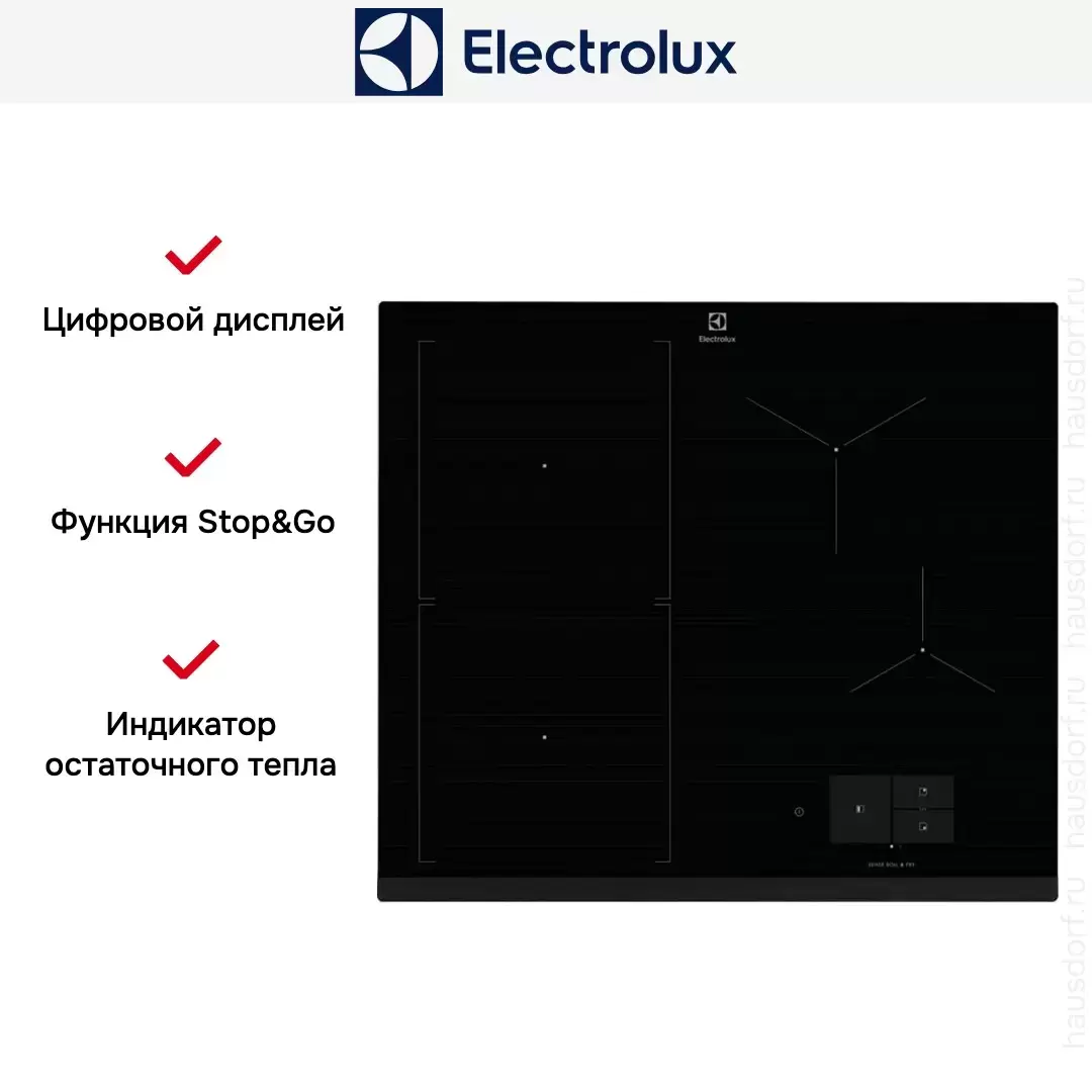 Электронная панель с цифровым дисплеем и сенсорным слайдером TouchSlider обеспечивает плавную и точную регулировку. Фронтальное расположение элементов удобно для контроля и не требует наклона при готовке. Таймер с функцией отключения и звуковым сигналом, а также режим Stop&Go позволяют управлять временем приготовления без постоянного наблюдения. Наличие индикаторов остаточного тепла повышает безопасность при интенсивном использовании.