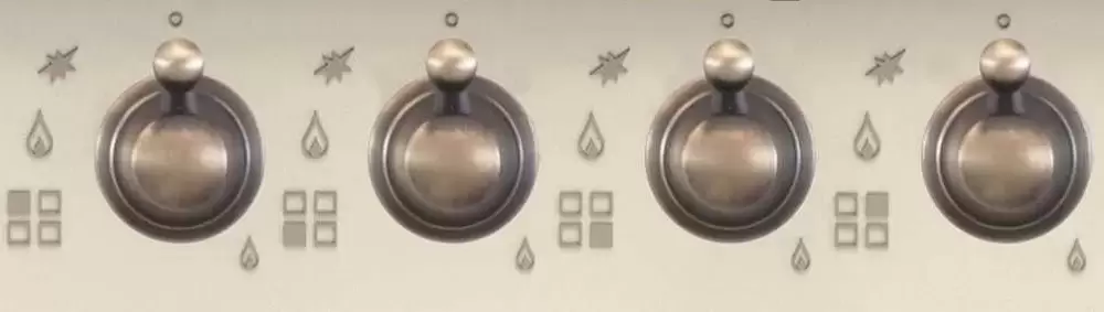 Слева в первом ряду расположена мощная WOK-конфорка для приготовления блюд азиатской кухни в посуде с округлым дном, которая устанавливается на специальной подставке. Два ряда пламени позволяют распределять тепло по дну посуды более равномерно, так что нагрев происходит быстрее. В числе прочих зон нагрева имеются две средние и одна вспомогательная для разогрева готовых блюд. Справа, на безопасном расстоянии от WOK-конфорки, находится механическая панель управления с поворотными переключателями, рукоятки которых изготовлены из металла и не нагреваются при включении газа. Система безопасности варочной панели Кортинг HGG 6911 CTRB «Газ-контроль» перекрывает газ при случайном угасании пламени.