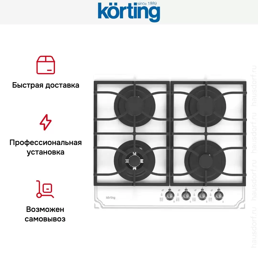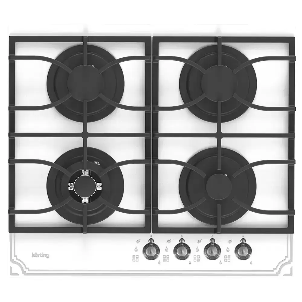 Korting HGG 6911 CTRW — независимая газовая варочная поверхность шириной 60 см в современном стиле. Модель типа «газ на стекле» предназначается для встраивания в столешницу. Стекло белого цвета отличается высокой стойкостью к воздействиям любого рода и способно выдерживать температуру до 450°C. Электроподжиг позволяет зажигать горелки без помощи спичек или зажигалок — для этого достаточно повернуть и нажать ручку поворотного переключателя. Раздельные фигурные решетки для посуды изготовлены из чугуна и отличаются устойчивостью.
