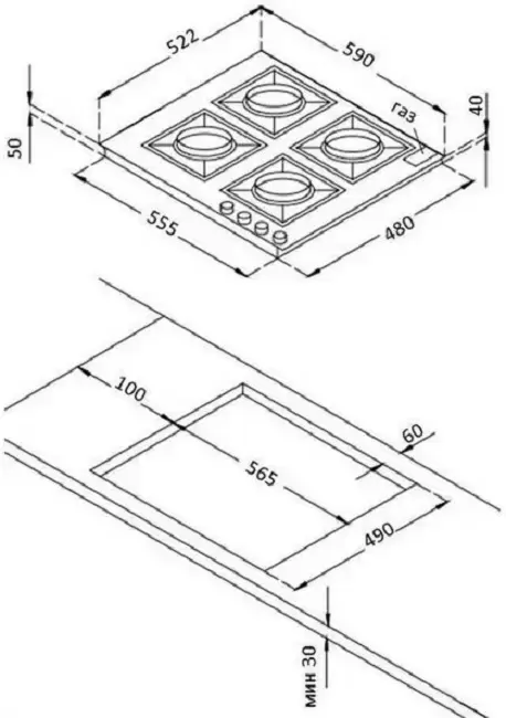 | Размеры ниши для встраивания (Ш х Г), см | 3x56х49 | |