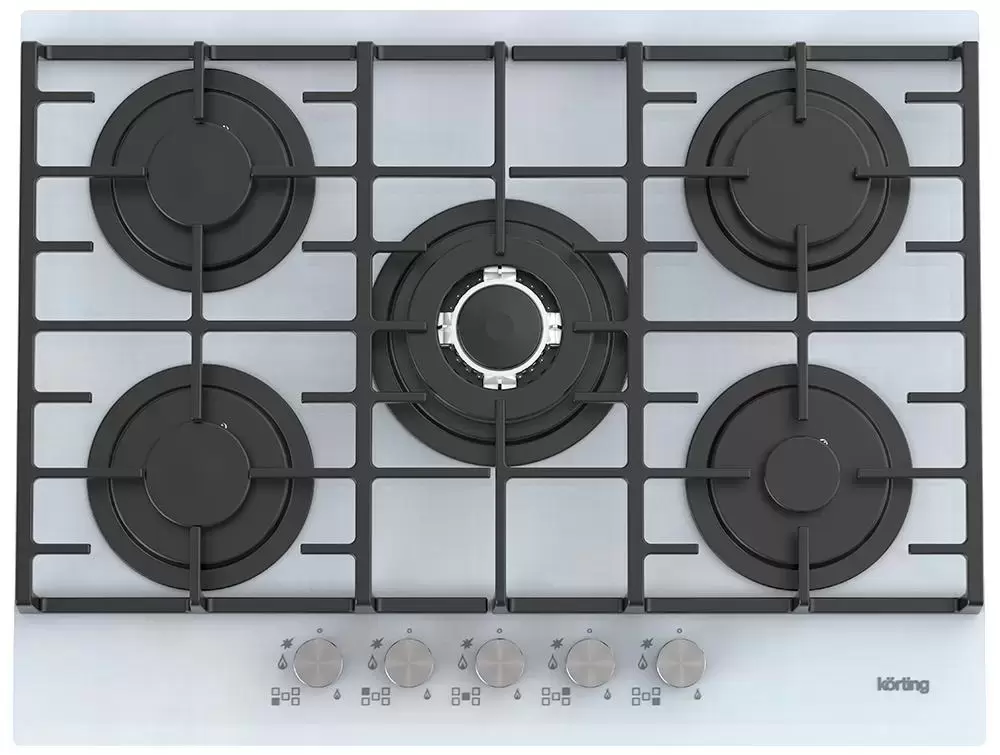 Выбор газовой варочной панели чаще всего обусловлен тем, что в частный дом или квартиру проведен именно газ в качестве обогрева. Работать с этой моделью довольно просто, так как мощность нагрева видна невооруженным взглядом — по силе огня в горелке. Количество конфорок в этой модели: 5.