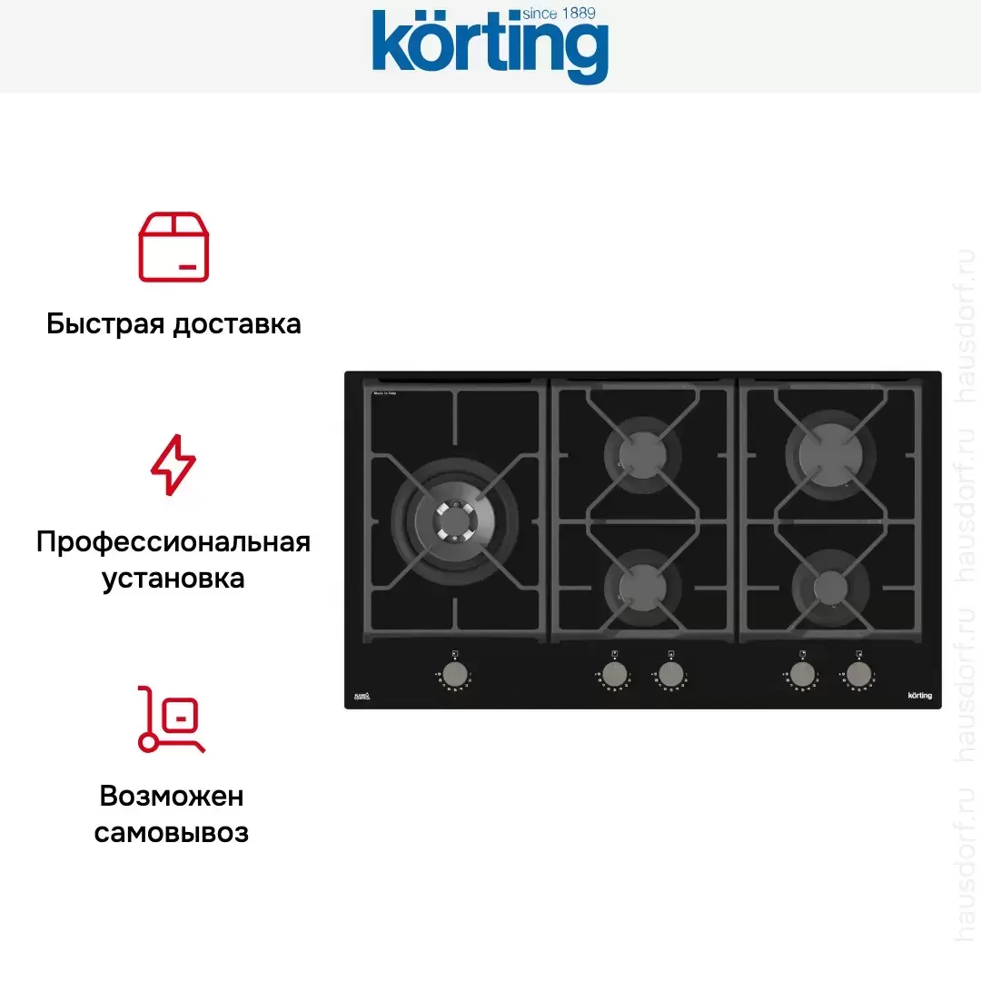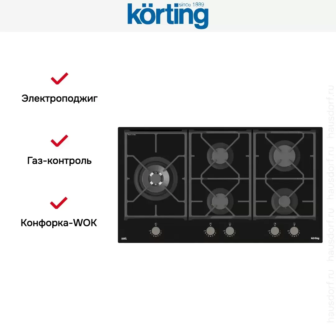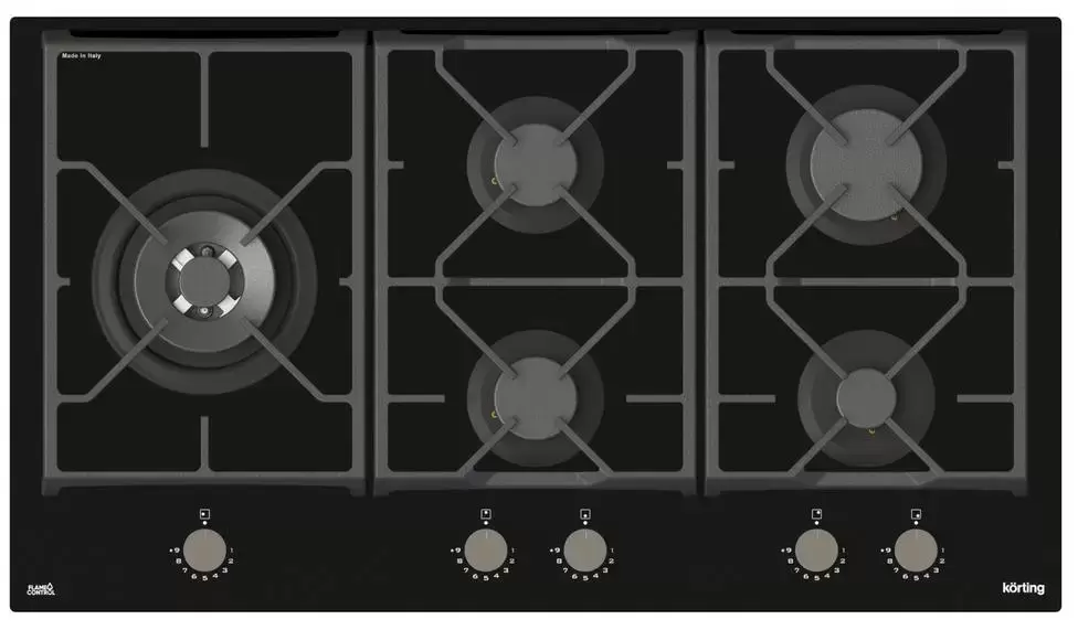 Korting HGG 9987 CTN FLC — варочная панель типа «газ на стекле» шириной 90 см и глубино 51 см. Модель с пятью конфорками различной мощности подойдет для кухни большой площади — ее можно разместить на кухонном острове. Для установки посуды служат решетки из чугуна с возможностью мытья в посудомойке. Слева находится мощная WOK-конфорка для интенсивного приготовления и кипячения воды. Механическая панель управления с поворотными переключателями регулирует мощность нагрева на 9 уровнях. Варочная панель Кортинг HGG 9987 CTN FLC оснащена электроподжигом и системой «газ-контроль», которая предотвращает утечки газа.