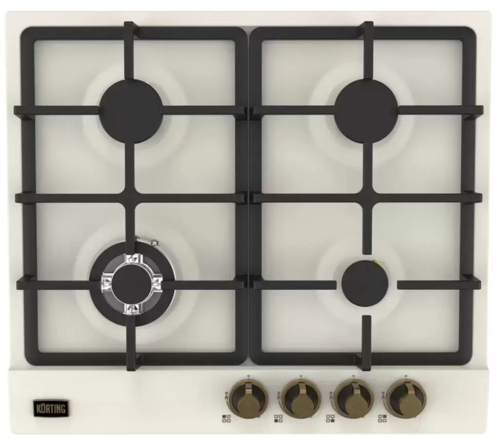 Korting HG 661 CTB — газовая варочная панель шириной 58 см с четырьмя конфорками различной мощности. Модель цвета слоновой кости из серии Provence изготовлена из эмалированного металла и дополнена бронзовой фурнитурой. Слева в первом ряду расположена WOK-конфорка для приготовления блюд азиатской кухни. Подставка для WOK-посуды с округлым дном входит в комплект. Посуда размещается на раздельных чугунных решетках. Для включения конфорок без спичек и зажигалок предусмотрен электроподжиг. Варочная панель Кортинг HG 661 CTB оснащена системой «Газ-контроль», которая прекращает подачу газа, если пламя угаснет.