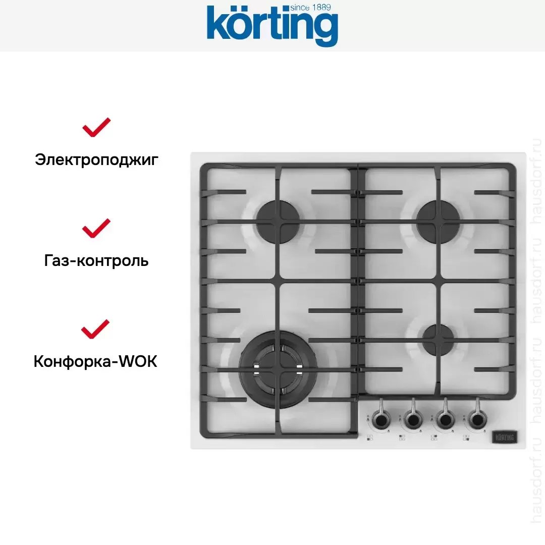 Выбор газовой варочной панели чаще всего обусловлен тем, что в частный дом или квартиру проведен именно газ в качестве обогрева. Работать с этой моделью довольно просто, так как мощность нагрева видна невооруженным взглядом — по силе огня в горелке. Количество конфорок в этой модели: 4.