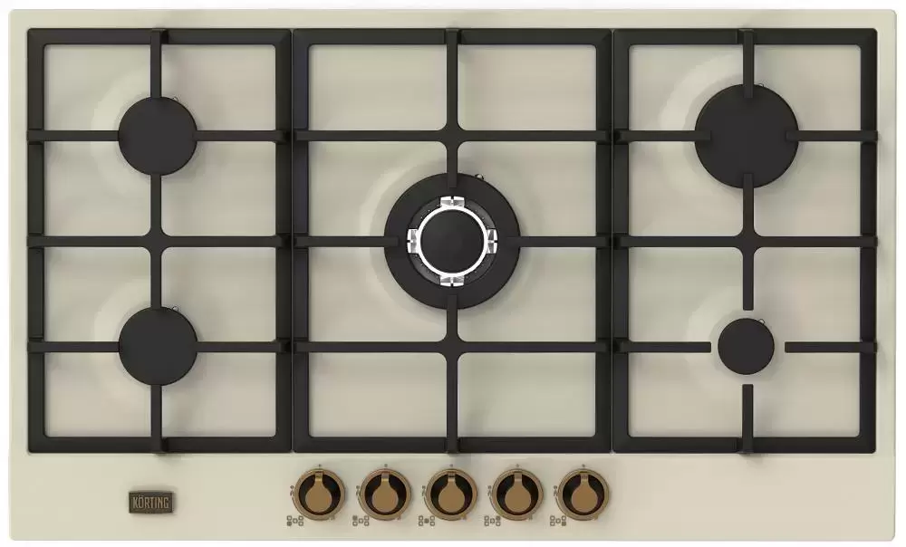 Korting HG 961 CTB — газовая варочная панель с пятью конфорками шириной 86 см. Модель с поверхностью из эмалированного металла цвета слоновой кости с бронзовой фурнитурой будет уместна в просторной классической кухне. Варочная панель Кортинг HG 961 CTB оснащена электроподжигом для включения конфорок без спичек и зажигалок, форсунками для подключения к газу в баллонах, раздельными чугунными решетками и системой «Газ-контроль», перекрывающей подачу газа при случайном угасании пламени. В центре расположена WOK-конфорка мощностью 3,1 кВт, которую можно использовать, чтобы быстро вскипятить жидкость.