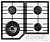 Всего на панели расположены четыре конфорки разного диаметра и мощности. Спереди находится зона WOK с большой мощностью. За счет двойной подачи огня и особенной формы конфорки на ней можно готовить в посуде с толстыми стенками и специализированной посуде для WOK. Благодаря удобному размещению конфорок, процесс приготовления пищи становится максимально комфортным. Панель управления находится справа от нее, поэтому жар не достигает переключателей. Огонь зажигается автоматически при повороте регуляторов.