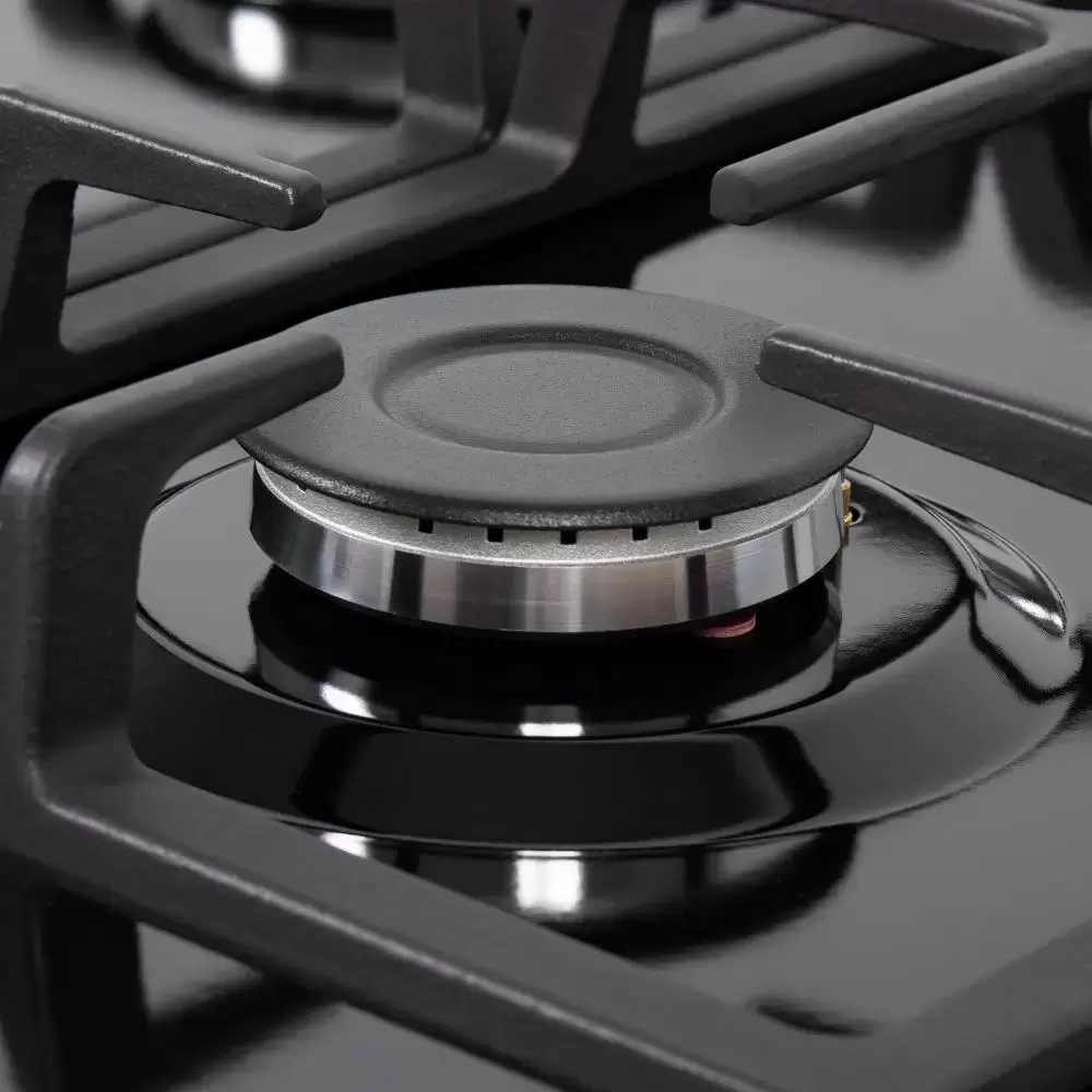 Отдельная WOK-конфорка с повышенной мощностью 3800 ВТ позволяет быстро готовить блюда за счет равномерного нагревания даже больших поверхностей, а массивные чугунные решетки Маунфилд обеспечивают повышенную устойчивость даже для объемной посуды при готовке.