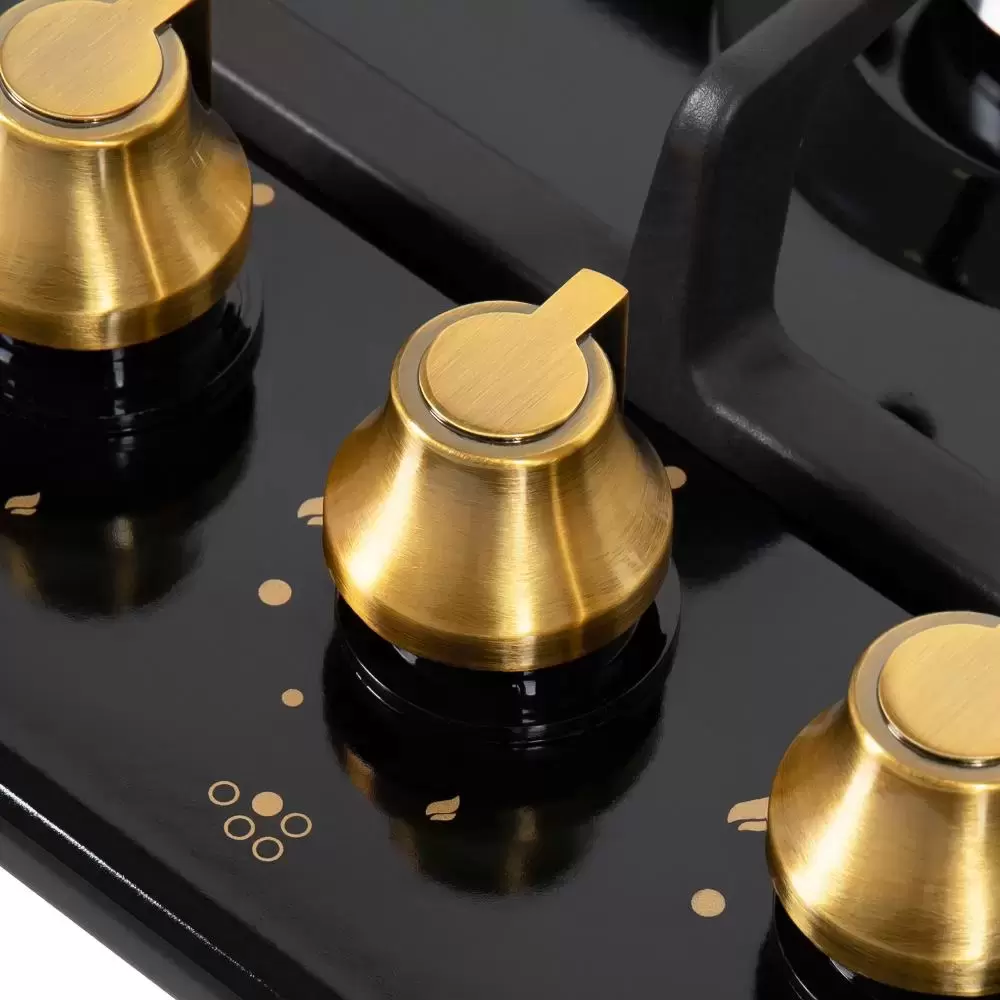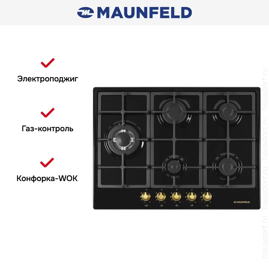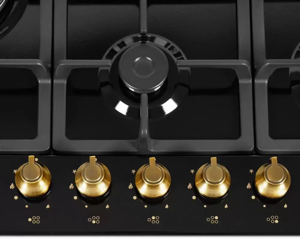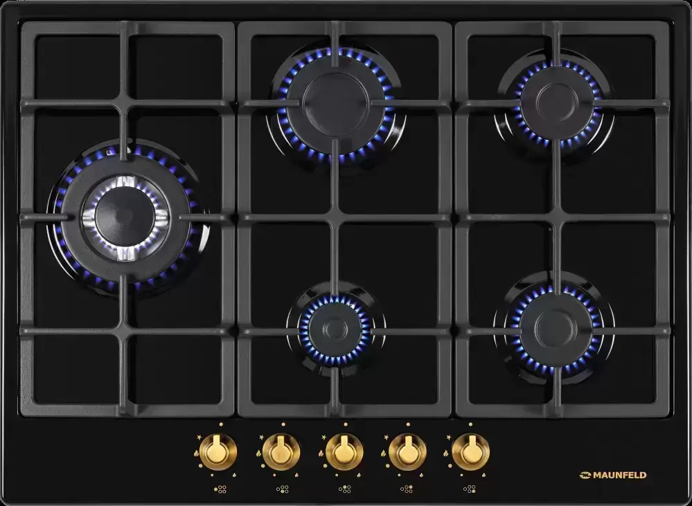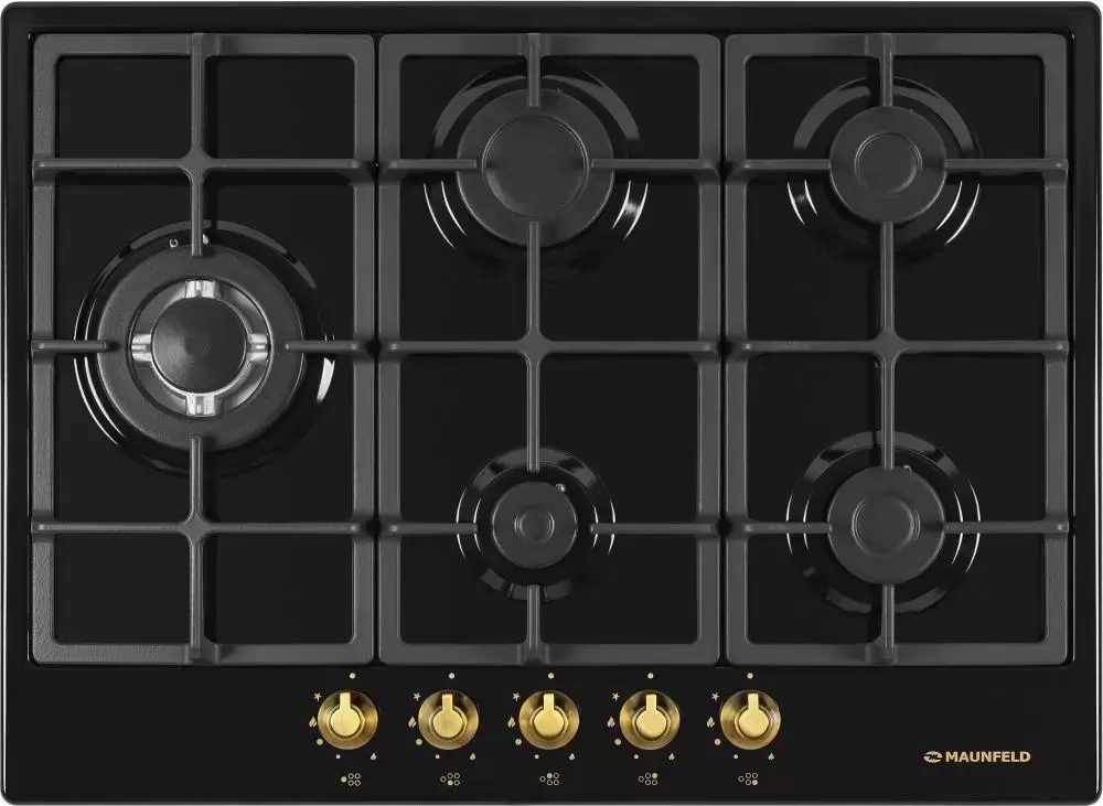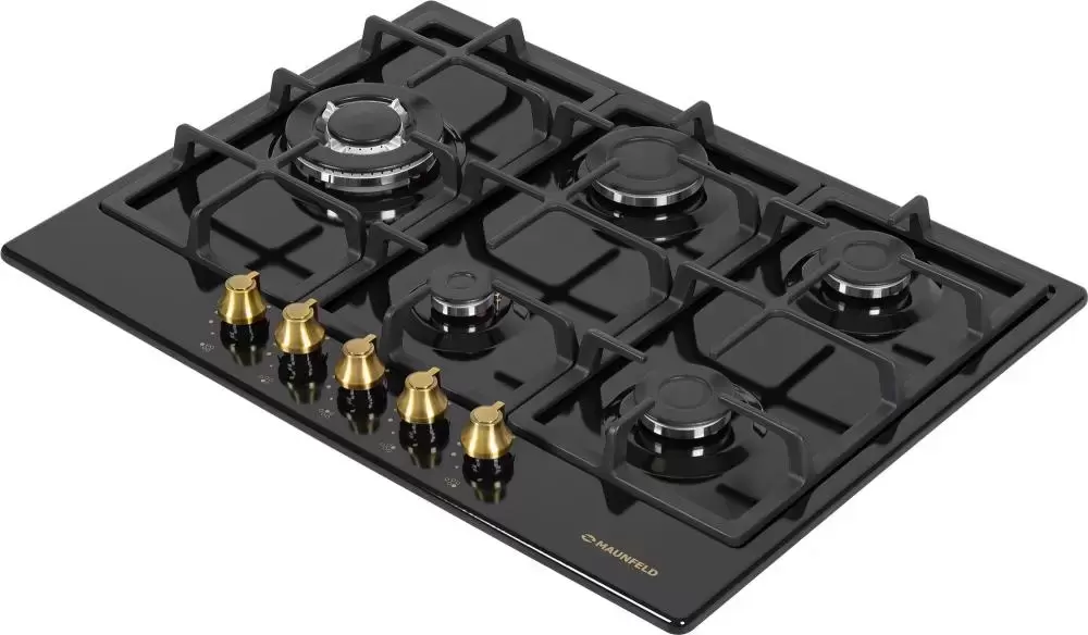 Газовая варочная панель MAUNFELD EGHE.75.33CB.R\G — это мощная встраиваемая плита с пятью конфорками, в том числе и отдельно расположенной WOK-горелкой. Изготовленная из металла и покрытая термостойкой эмалью черного цвета с золотистыми поворотными ручками, эта стильная модель станет прекрасным выбором для современной кухни.